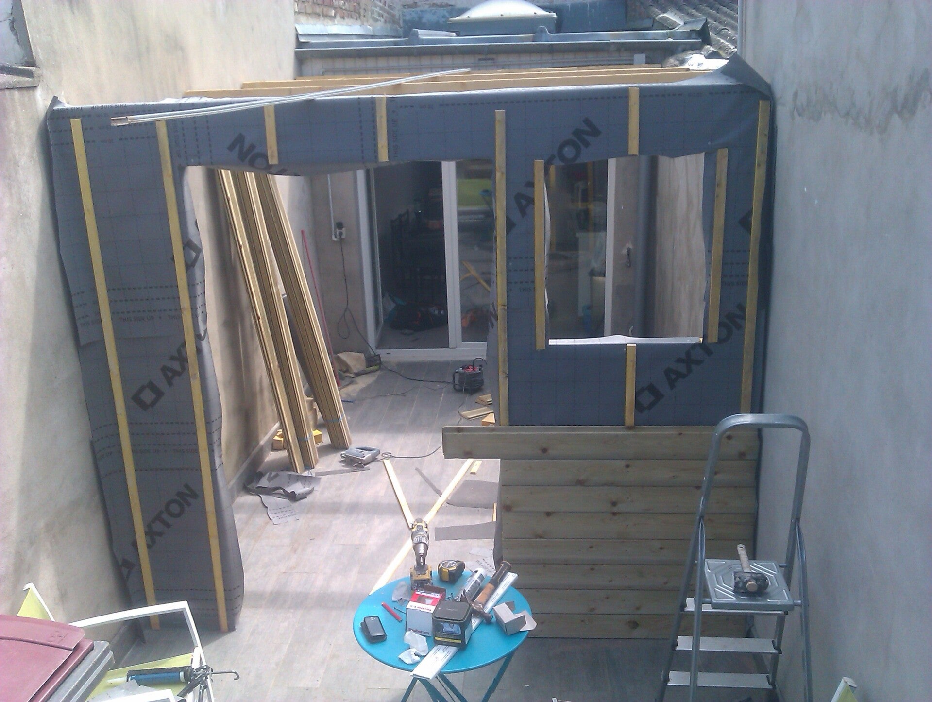 Changement toiture véranda plus création plafond plus passage de câble pour point lumineux